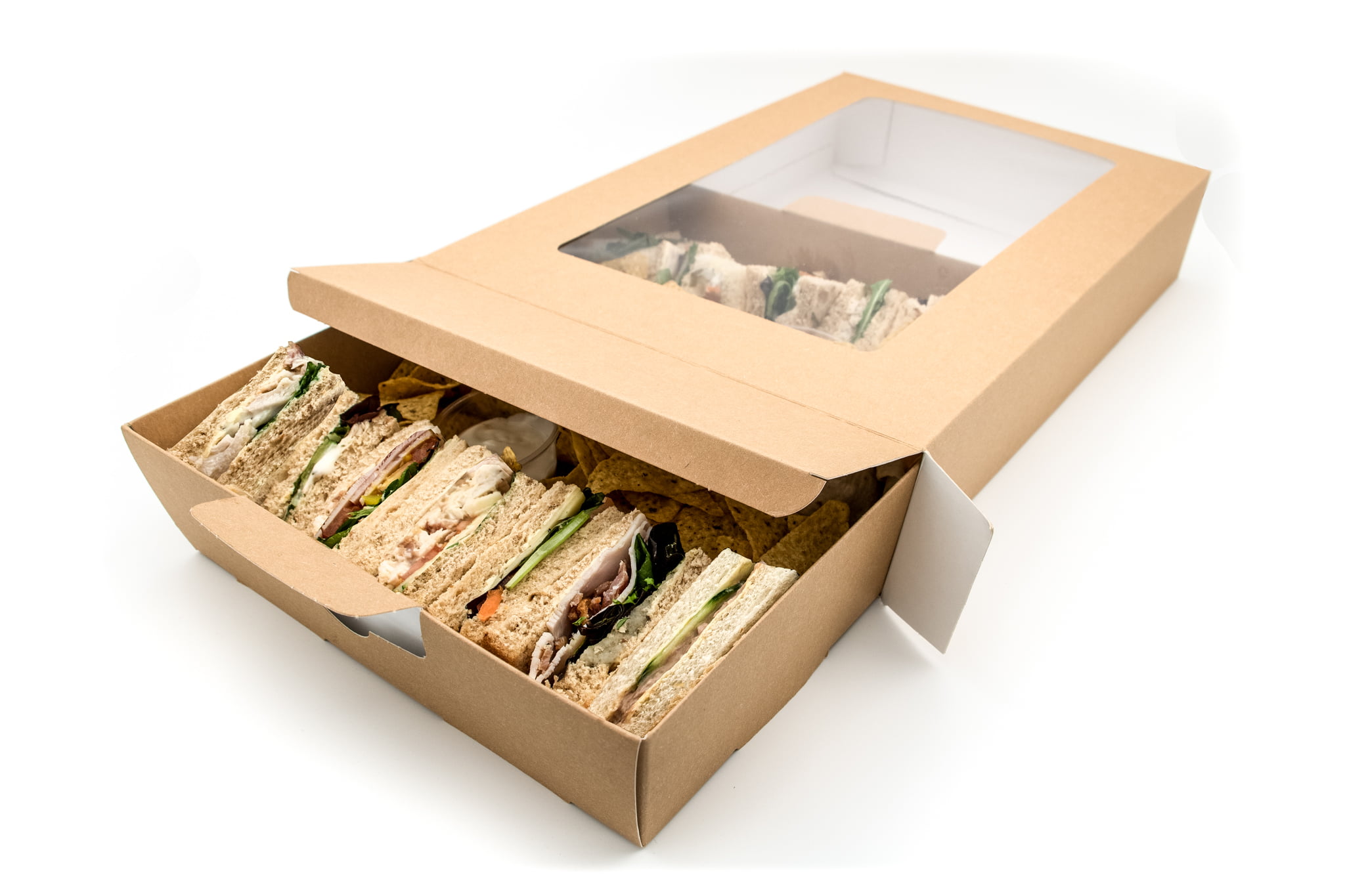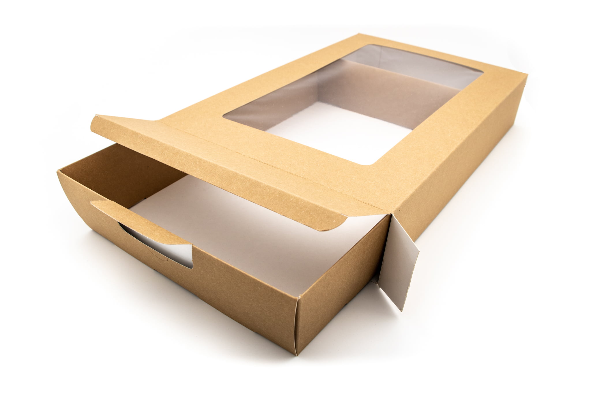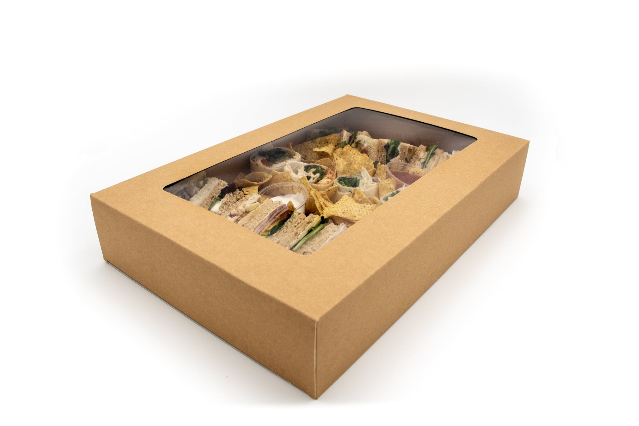 These platters also feature a film fronted window, vastly improving product presentation and visibility. Furthermore, these boxes come with an insert, allowing you to easily slide the contents in and out.