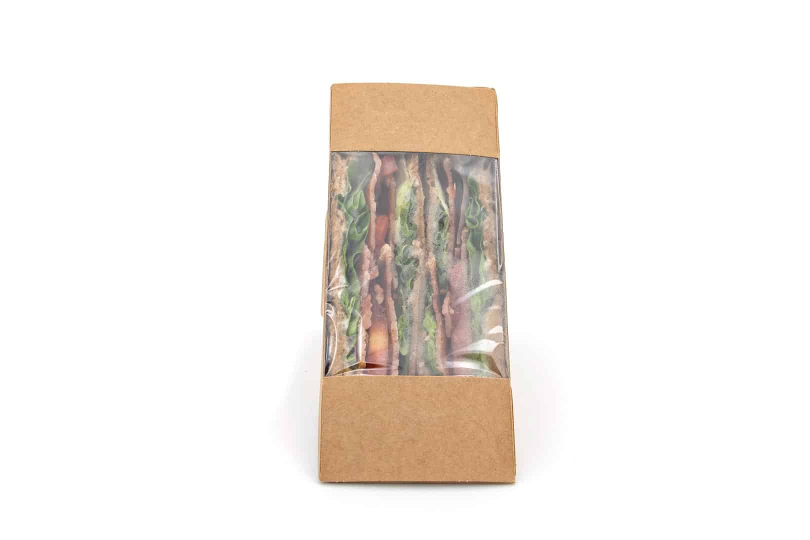 Featuring a film fronted window, this wedge will seamlessly display its contents, making it perfect for serving triangular cut sandwiches.